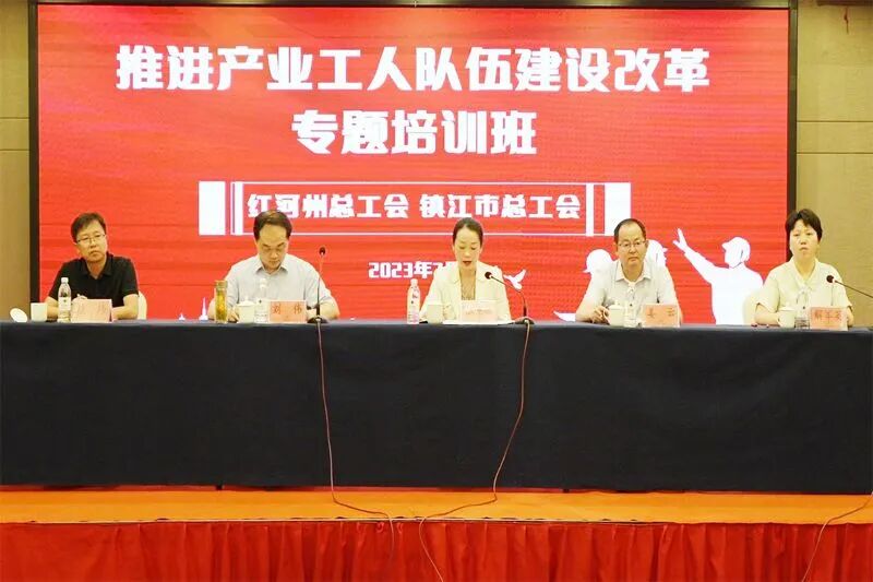为深入学习习近平新时代中国特色社会主义思想,加快推进产业工人队伍建设改革,为推动红河州高质量发展走在前列提供重要人才支撑和基础保障。7月24日,云南省红河州2023年深化产业工人队伍建设改革工作专题培训班和江苏省镇江市产业工人队伍建设改革专题培训班在江苏省镇江市举行开班仪式。红河州政协副主席、州总工会主席张艳梅,红河州总工会党组书记、常务副主席姜云,江苏省总工会劳经部副部长刘伟等领导出席开班仪式。江苏省镇江市总工会副主席解军英主持仪式。