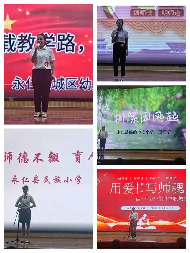 师德如修竹,虚心才能拔节;师德如雅菊,高洁方能斗艳。为全面学习贯彻党的二十大精神和习近平总书记关于教育的重要论述,深入开展“正师德,铸师魂,树师表”师德师风主题教育活动,全面提升教师队伍职业道德素质,引导广大教师争做“四有”好老师。7月23日,中共永仁县教育工作委员会、永仁县教育体育局举行2023年“贯彻党的二十大精神 弘扬师德践初心”主题演讲比赛。