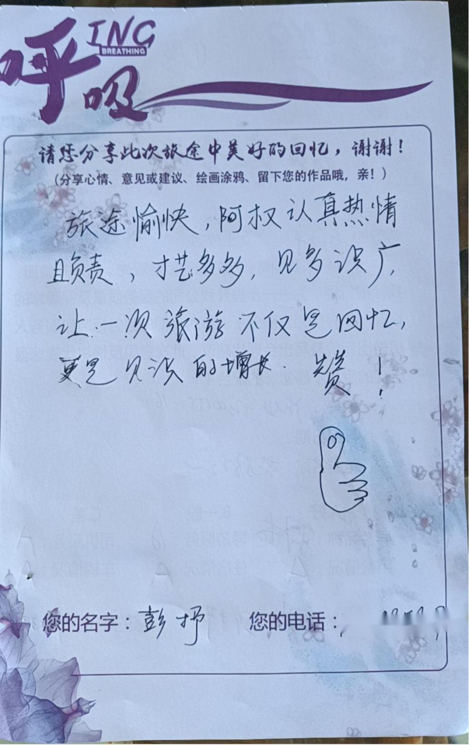此外,郭太权还收获了不少感谢留言,如称赞他:“认真热情且负责,才艺多多,见多识广。让一次旅游不仅是回忆,更是见识的增长”。