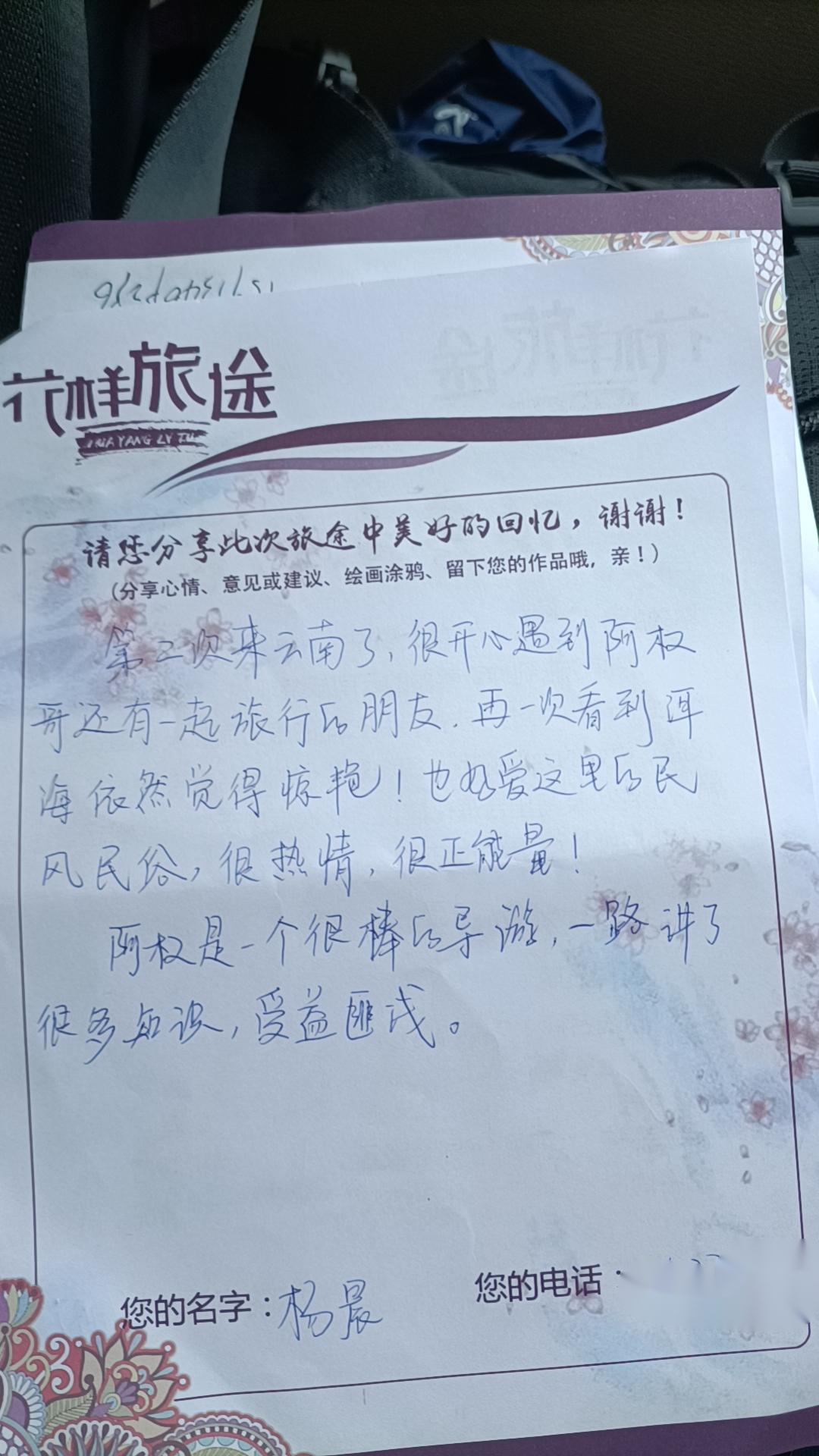还有游客说:“第二次来云南了,很开心遇到阿权哥,再一次看到洱海,依然觉得惊艳!也好爱这里的民风民俗,很热情,很正能量!阿权是一个很棒的导游,一路讲了很多知识,受益匪浅。”