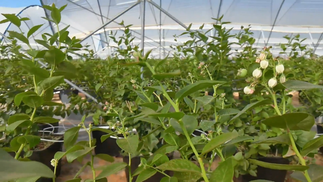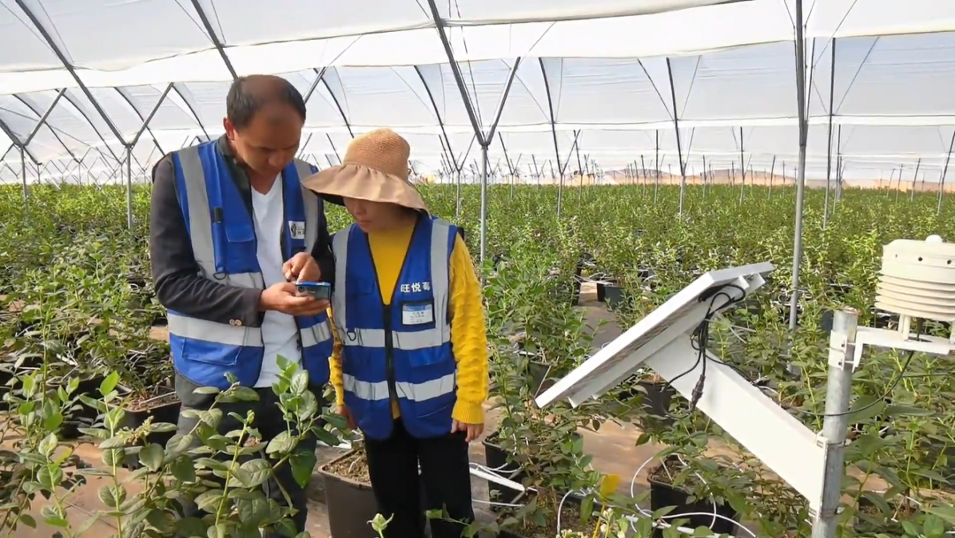“数字化”实现智慧生产。永仁数字蓝莓现代产业园以“互联网+农业”为依托,充分整合物联网、图像识别、大数据等技术应用,把农业种植搬到“云”上,数字赋能有力撑起现代农业,不仅可以保护生态环境,还比传统农业种植更高产、高质,丰产期每株每年产量能达到6公斤。在日常生产、管理中,气象观测站可以实时监测园区里的温度、湿度、光照,操作人员可以根据大数据进行通风和灌溉调整,采用智能化操作系统实现一体化脉冲式滴灌,相比普通滴灌,所需水肥节约了近70%,同时还能有效保护环境,不让肥料堆积在土壤里。一般情况下,25亩蓝莓仅需1名工人管理,就可实现精准滴灌、精准管理。