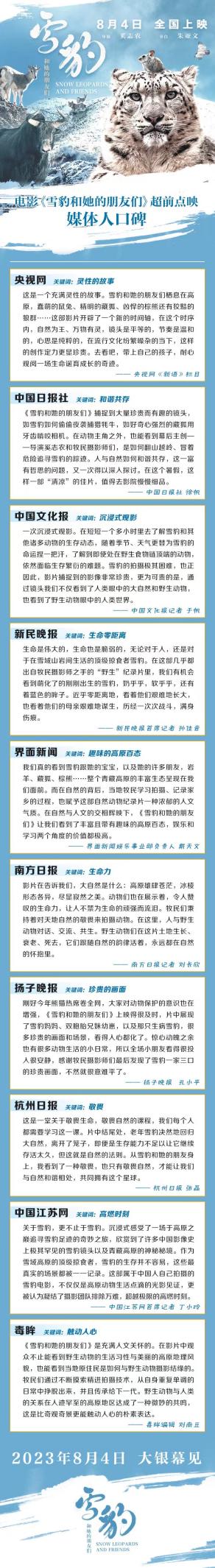 此前的多次展映、点映,让《雪豹和“她”的朋友们》在全网引发广泛讨论,口碑持续出圈。
