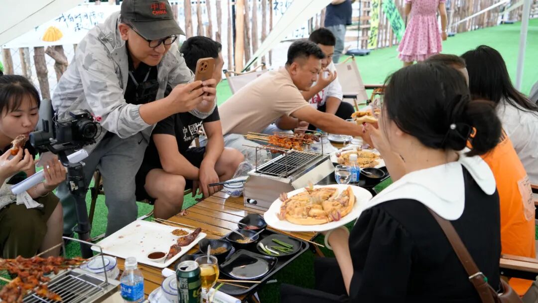 来到烧烤体验区,网络达人们又化身为美食推荐官,通过探店、美食拍摄短视频、图文等形式,用接地气、有温度的传播方式向粉丝们推介临沧2023年火把节期间有哪些推荐的美食。网络达人“萝卜山的青松哥”是一位在抖音和快手都颇具名气的自媒体主播,这次他更是带着儿子来打卡:“淄博烧烤能来临沧,我觉得特别高兴,希望能借这个契机让更多的游客来到临沧,作为一名政协委员和自媒体工作者,我在宣传临沧美食美景的同时,也要把临沧的快乐和温情一并宣传出去,分享给全国的游客朋友。”
