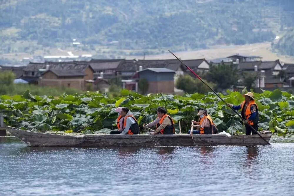 泛舟西湖,美景尽收眼底。临水而建的小房子、浓郁多彩的白族风情、群山拥翠的高原水乡风光……这幅村内有湖、湖中有村的天然画卷,令人陶醉在“一片琼瑶水,千重翡翠山”的画境之中。