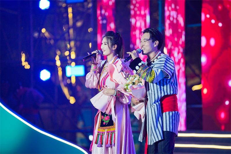 闭幕晚会在沪滇帮扶文艺队表演的傈僳情歌《果广卖兰》《麻比子》中拉开序幕。随后,舞蹈《怒江人民跟党走》《狩猎舞》,歌曲《怒族迎宾曲》《福贡情歌》《啊你然妹比洛衣》等节目接连上演。迷人的舞姿,动感的旋律,展示了浓郁多元的怒江少数民族风情,带着大家领略怒江少数民族文化魅力。