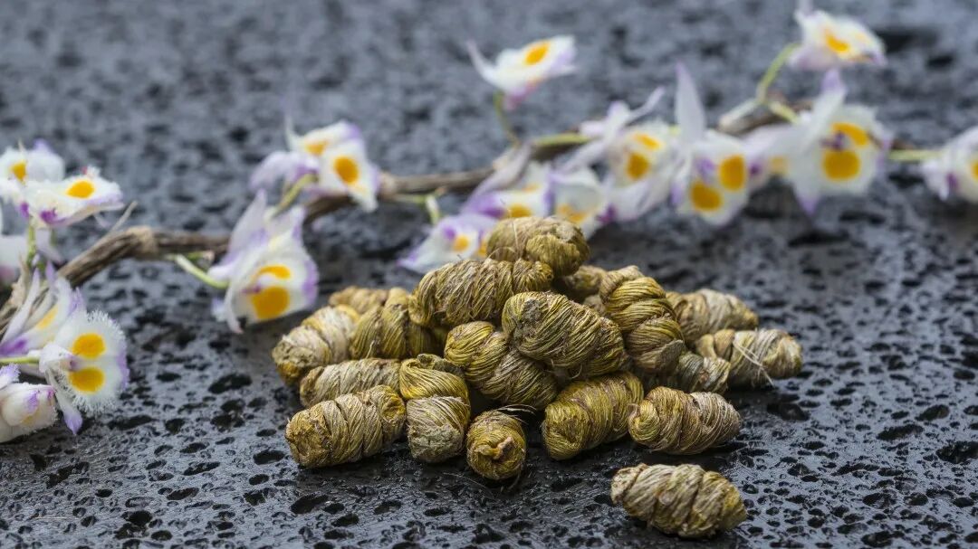 石斛除了药用价值高,入宴更是别有一番风味,勤劳智慧的龙陵人民更是把石斛吃出了“花”。石斛汁、石斛粥、石斛炖鸡、石斛圆子、石斛蛋挞等……围绕着石斛的茎、叶、花,龙陵人民将其养生功效和食用特点发挥得淋漓尽致,创造出了独具特色的龙陵石斛美食文化。