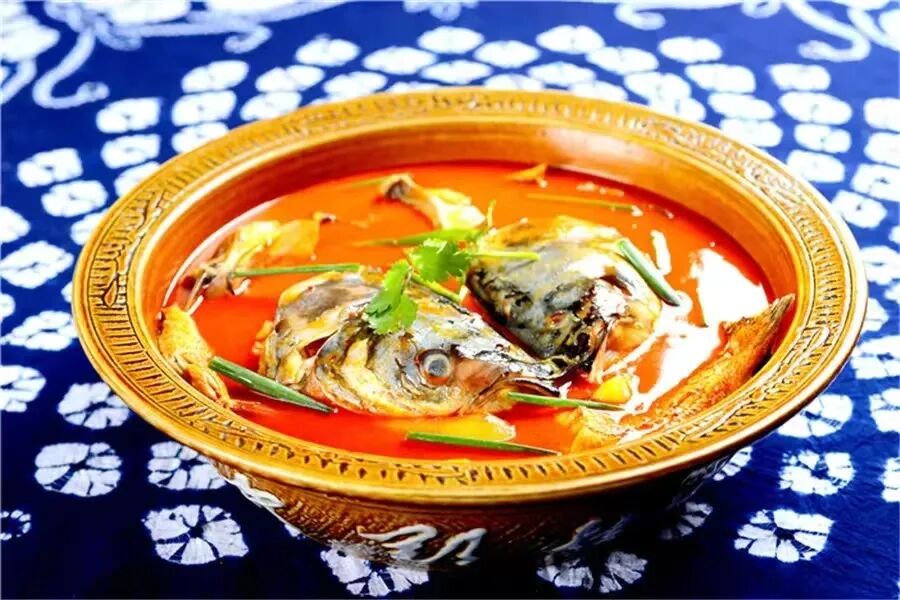海稍鱼分酸辣和清汤两种口味。酸辣的汤色暗红、味重适口,清汤的汤色乳白、清鲜美味。海稍鱼要用新鲜的花鲢鱼或白鲢鱼切大块,冷锅时放入菜油,然后放入生姜、大蒜、芝麻翻炒,待芝麻变黄时放入辣椒面,随后加入水,再加盐、酸精、洋芋适量,加入洗净切好的鱼块,大火煮20分钟左右,汤变成红黄色,加入葱、味精、鸡精、花椒后起锅,起锅装盆再撒上香菜即可。
