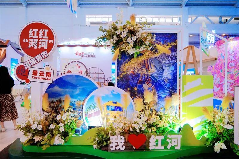 本次南博会,红河文旅展台以“云上梯田 梦想红河”为主题,聚焦“有一种叫云南的生活 有一个最云南的地方”文旅亮点,以“沉浸式体验”为观展特色,深入挖掘红河文旅风采。展台的空间设计高低错落有致,动静结合,兼具新锐、古朴、原生态,采用独特的建筑风格和布局,红河哈尼梯田贯穿始终,将展台打造成一个极具“红河最云南”的文旅体验空间。