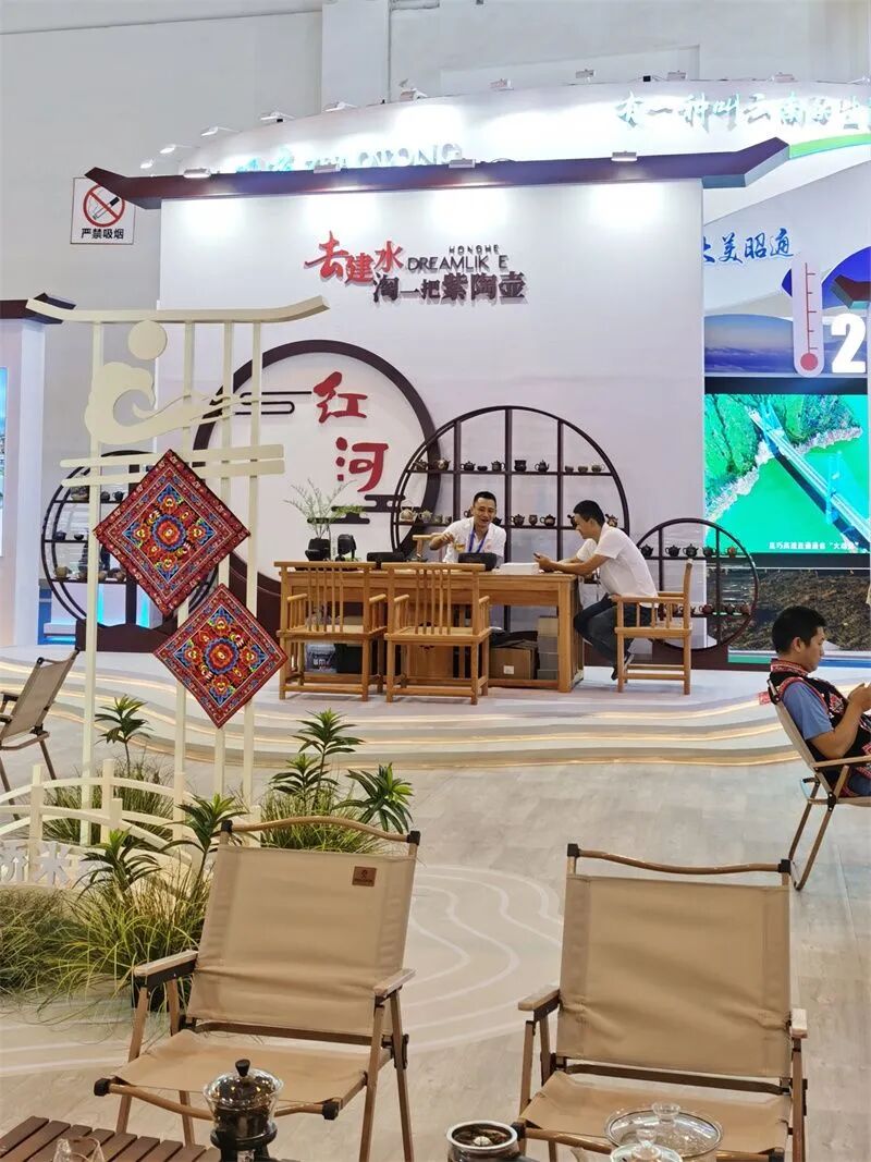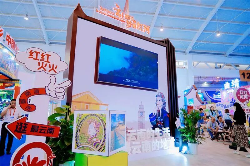 展台内,融入建水古城的古朴外观与千年建水紫陶之美,还摆放着宣传图册、手绘地图,以多样化的方式呈现红河特色,弥勒太平湖森林小镇、建水双龙桥、蒙自碧色寨、弥勒东风韵小镇、河口国门、屏边人字桥、泸西城子古村、石屏异龙湖等8大景点灯箱,集中展示红河“风景壮美、人文秀美、生态绿美”的大美风情。