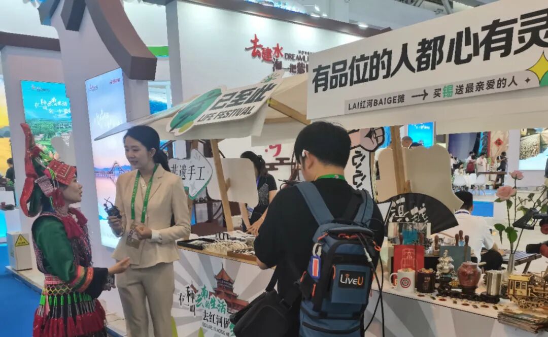 亮点频出的红河展台也吸引到了许多媒体的目光,其中,新华社直播间走进红河馆直播探店,带领大家云“逛”红河文旅生活集市空间。