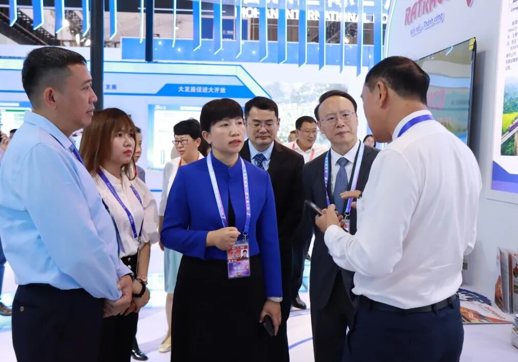 本届南博会红河州共有80余家企业在口岸经济馆等6个展馆设置展区参展,全方位展示近年来红河州对外开放和经济贸易发展成果。在口岸经济馆红河展区,罗萍听取了近年来红河州贯彻落实省委“3815”战略发展目标和州委“337”工作思路,全力发展口岸经济的工作情况,与参展企业负责人深入交流,详细了解参展产品及经贸合作等情况,叮嘱大家要用好展会平台、抢抓重要机遇,用好大通道、培育大物流、发展大产业、促进大开放,更好地把红河州的资源优势、区位优势转化为经济优势、发展优势。
