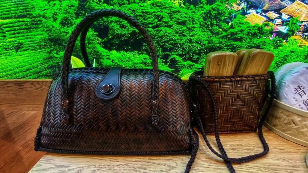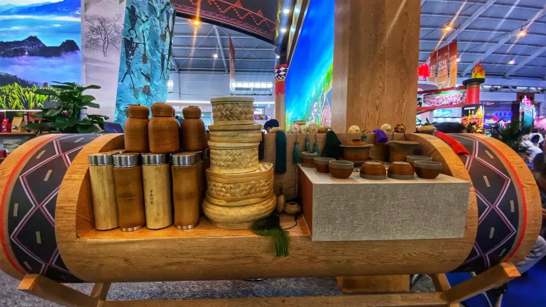临沧市临翔区中山竹艺馆为大家带来竹编产品,有茶具、手工编织的保温杯、小挂件、茶盒包装,欢迎大家来十一号馆参观。