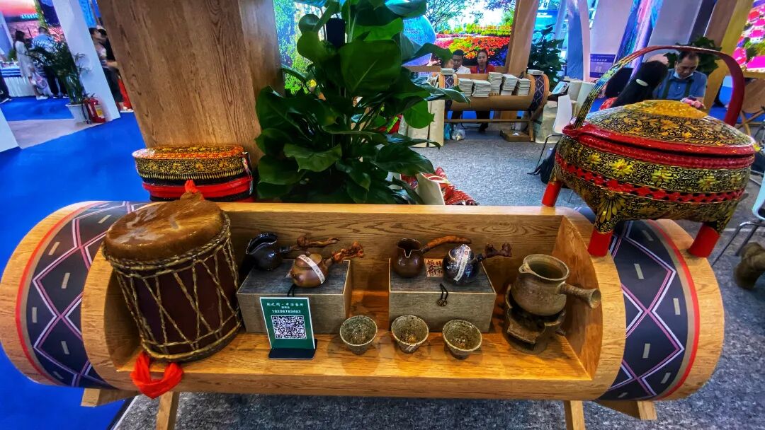 双江自治县文化和旅游局带来的产品有橄榄压片、橄榄果脯、橄榄原汁、橄榄饮料,除了这些,还带来了市级非遗产品——傣族土陶。