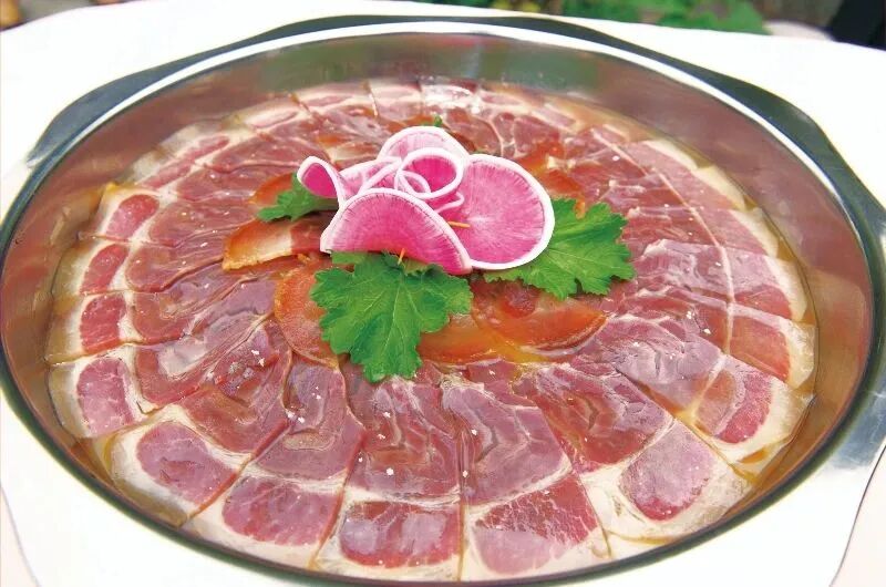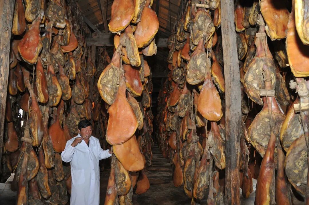宣威火腿,是宣威人在数百年腌腊肉的实践中创造出来的精品,可谓是时光雕琢过的美味。宣威火腿成品形似琵琶,外观皮面呈棕色或淡黄色,切面肌肉呈玫瑰色,骨呈深红色,油润有光泽。因品质优良,足以代表云南火腿,故又称为云腿。