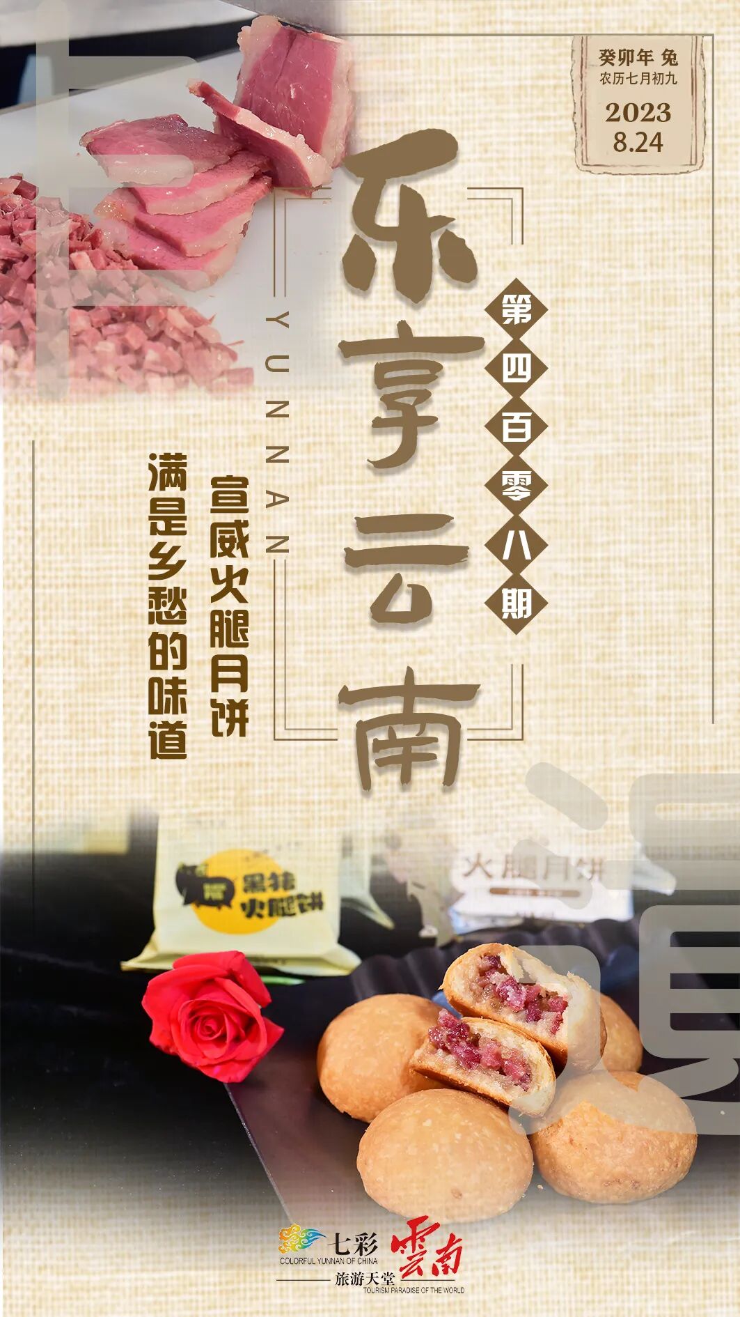 宣威火腿月饼是极具代表的滇式月饼之一,至今已有100多年制作历史,由面皮和宣威火腿馅料两部分组成。其中,馅料是宣威火腿月饼的“灵魂”,火腿好,工艺好,饼才好。2022年12月,宣威火腿月饼制作技艺入选第五批省级非物质文化遗产保护项目名录。
