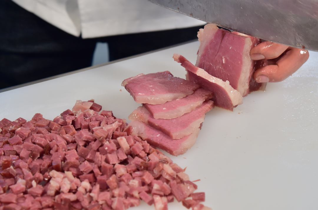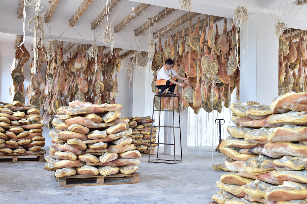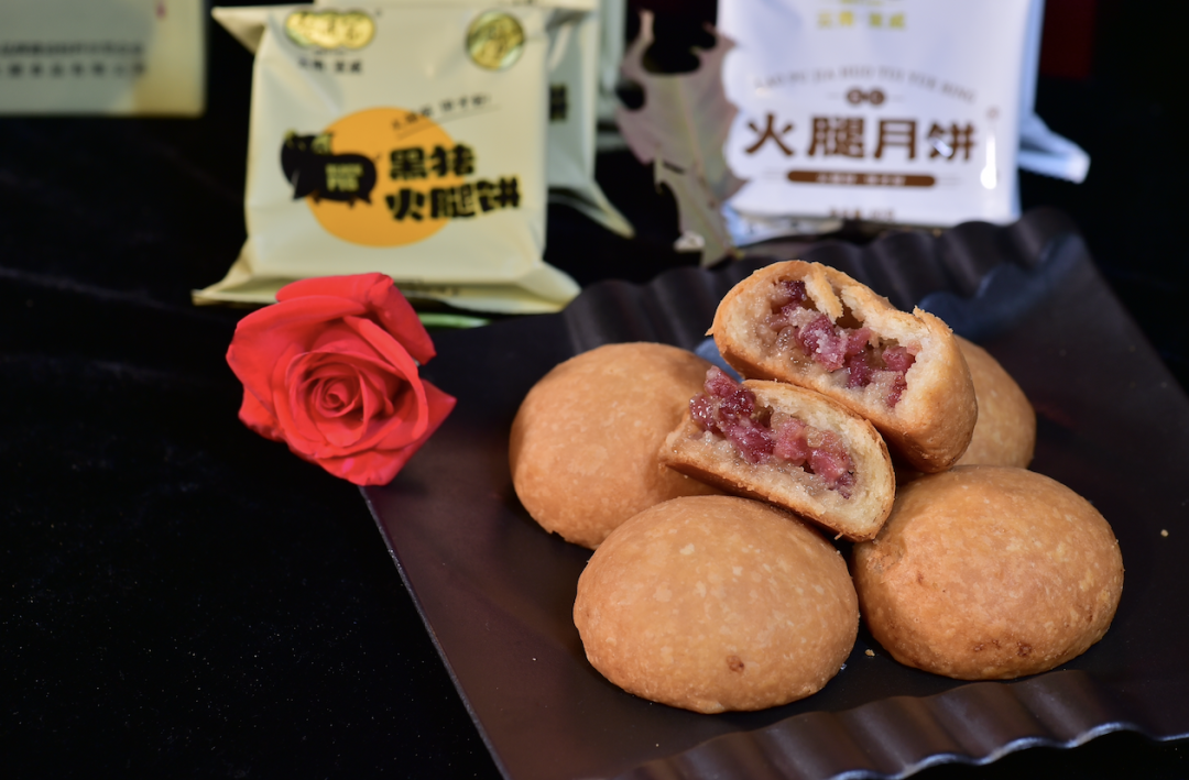 据介绍,每年冬至,宣威人就开始宰杀年猪,吃包谷、洋芋、胡萝卜煮食长大的乌金猪,后腿肉质紧实,肥瘦相间,用盐反复揉搓后,挂在房梁下自然发酵。火腿在干燥的高原朔风下逐渐脱水,吸收大自然的精华,待到来年就发酵成熟。用这样的火腿加上传统工艺制作的月饼,酥香味正,入口难忘。