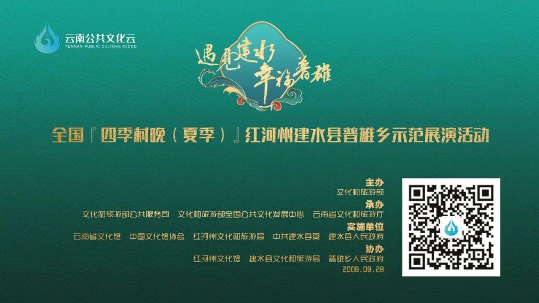为全面推进乡村文化振兴,推动公共文化服务高质量发展,鼓励和引导“村晚”常态化开展,根据文化和旅游部公共服务司的评定公示结果,红河州建水县普雄乡被列为2023年全国“四季村晚(夏季)示范展示点,成为云南省三个示范展示点之一,8月28日晚19:30,一场具有浓郁红河民族特色和乡土气息的“村晚”将在建水县普雄乡普雄新村隆重上演。