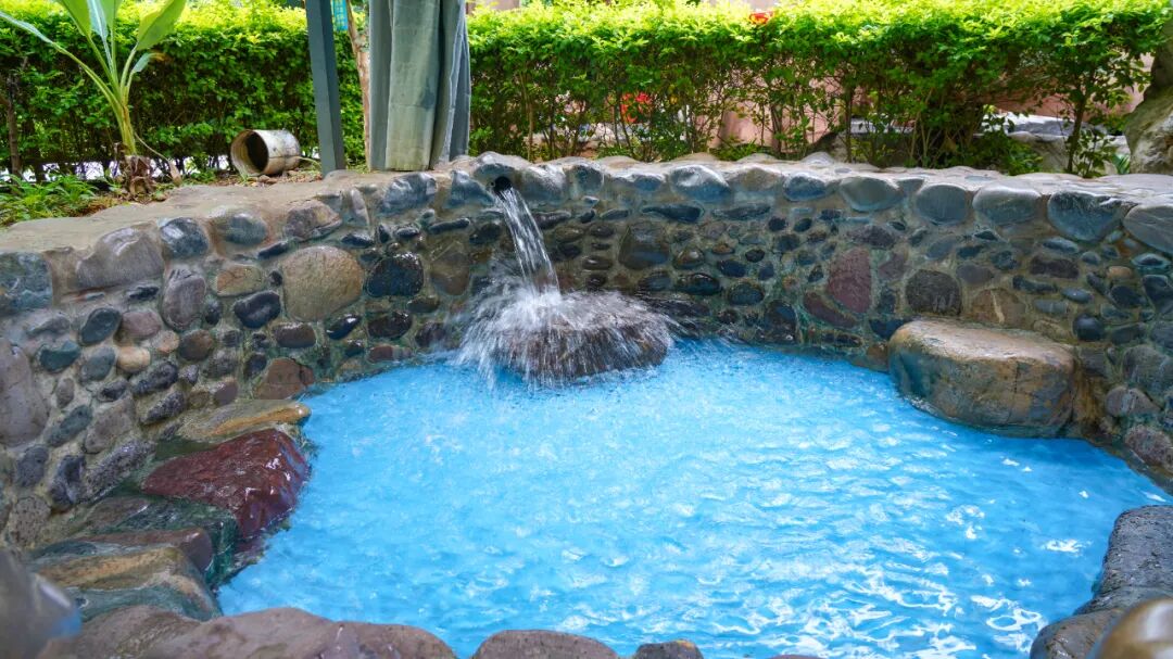 在温泉酒店里,温泉浴场通常分为成人游泳池和儿童游泳池,还有许许多多的小泡池。小泡池一般分布在棕榈树下或芭蕉林中,周边绿化草木赏心悦目,在这样的环境下泡温泉,颇有几分回归自然、天人合一的养生意境。同时,温泉酒店内,通常还设有餐厅、会议室和自助烧烤等设施。