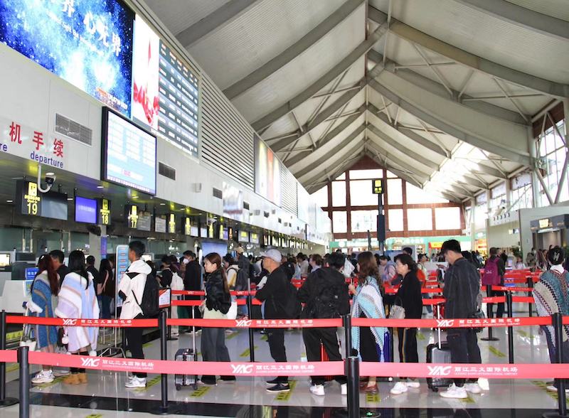 为满足暑运期间旅客多样化出行需求,丽江机场与各航司积极协调,通过新开航线、加密航班等方式优化运力配置和航线网络布局。暑运期间,丽江机场新引入越南越竹航空,新开丽江至曼谷、河内2条国际航线,恢复丽江至昭通省内环飞航线,机场通航城市增加至95个,国际及地区航线达到8条,运营航空公司增加至37家。丽江至昆明航班日均提升至4班,丽江至广州、南京、西安、郑州等地日均航班量达6班左右,丽江至版纳日均航班加密至6班以上。