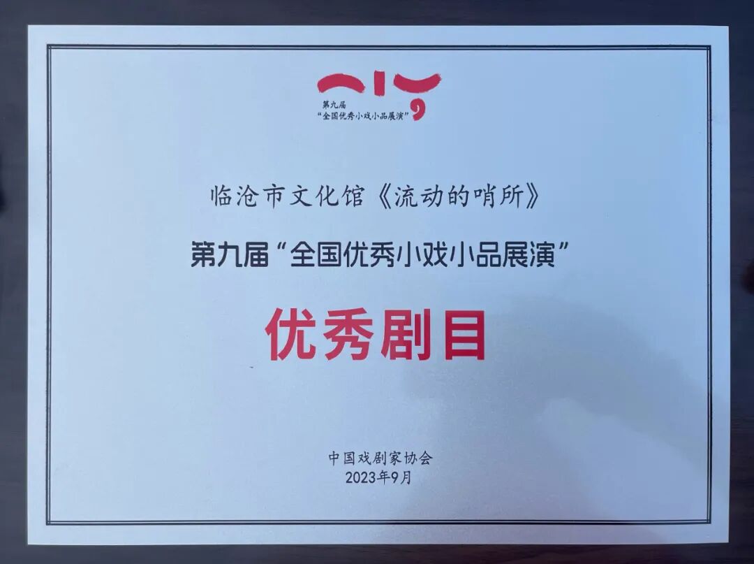 日前,由临沧市文化馆创作的话剧小品《流动的哨所》,在中国戏剧家协会主办的2023年中国小戏小品盛典暨第九届“全国优秀小戏小品展演”活动中荣获优秀剧目奖。