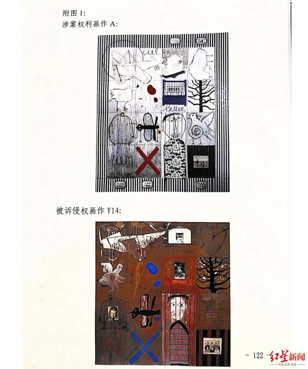 (上:比利时艺术家西尔万的作品 下:叶永青的作品。源自一审判决书)