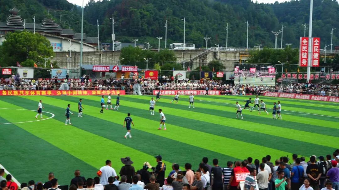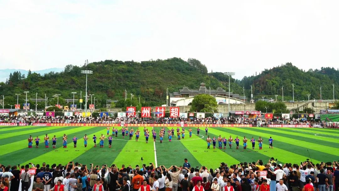 9月9日,在贵州省榕江县举行的全国美食足球友谊赛(村超)赛场上,来自云南普者黑的荷花宴队与贵州剑河红米粉队进行了一场精彩比赛。