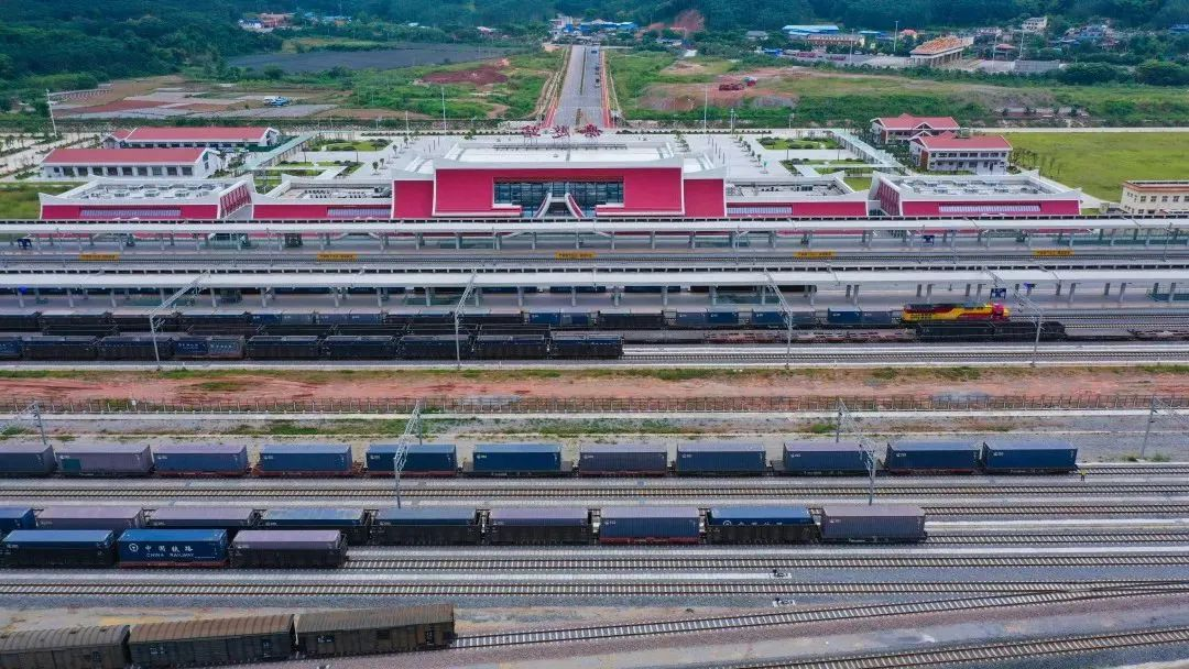 (车流如织的磨憨站 图源:“昆明铁路”微信公众号 陈畅 摄)