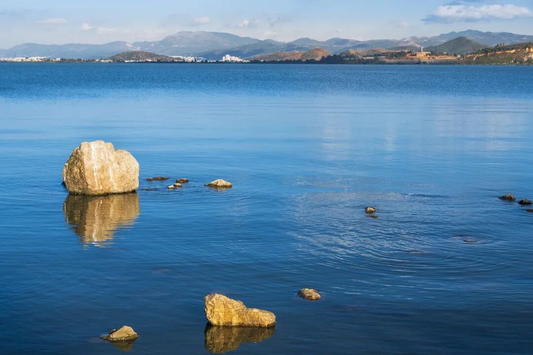 滇池位于昆明市区西南,是云南省面积最大的高原湖泊,也是全国第六大淡水湖,有着“高原明珠”之称。《云南通志·地理志》载:“滇池为南中巨浸,周广五百余里。”昆明大观楼“五百里滇池奔来眼底,披襟岸帻,喜茫茫空阔无边”的长联,让人读之如见滇池的碧波令人欣喜。