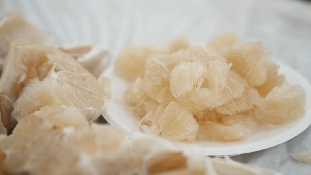 “东试早”柚不仅成熟期早,还是全身都是宝的“懂事宝”。剥开的柚子皮带有浓郁的清香,是制作蜂蜜柚子茶的好材料,也是寻常人家放置在冰箱、厕所的除味“神器。削去外层绿皮,保留白色海绵部分,经过焯水挤干水分等步骤后,再放入油、小米辣、蒜末进行爆炒或凉拌的柚子美食,会给你带来别样的美食体验。