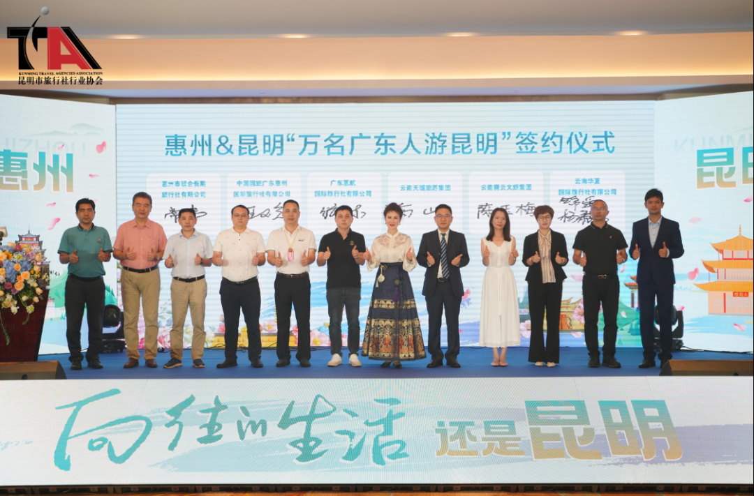 惠州市联合假期旅行社有限公司、中国国旅广东惠州国际旅行社有限公司、广东惠航国际旅行社有限公司还与云南华夏国际旅行社有限责任公司、云南腾云国际旅行社有限责任公司、云南天循国际旅行社有限责任公司签署“万名广东人游昆明”合作协议,将在跨区域文旅宣传推广、促进市场客源增长等方面展开深入合作。
