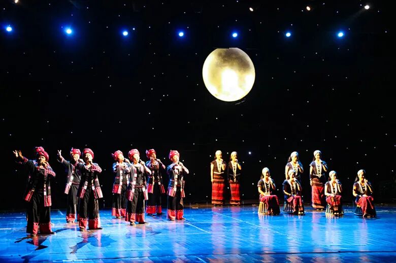 《月亮升起来》是广泛流传在沧源佤族地区乃至全国部分地区的一首佤族原创歌曲,被誉为“佤山小夜曲”。