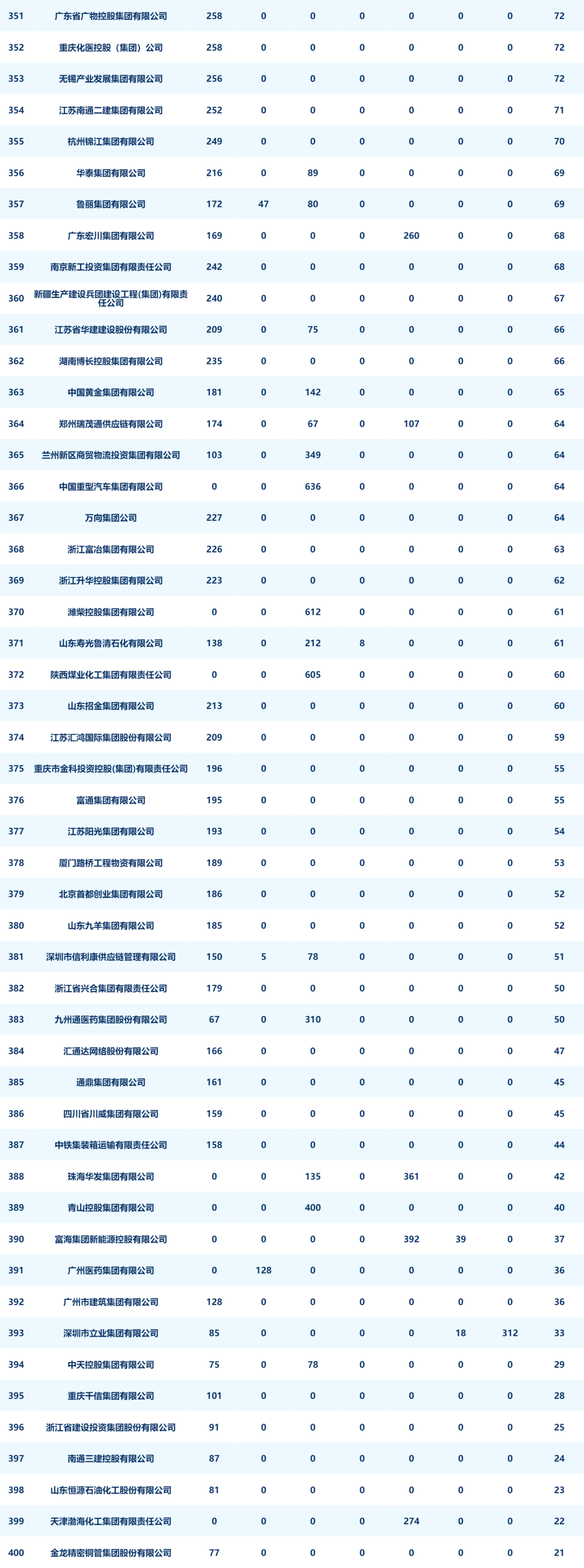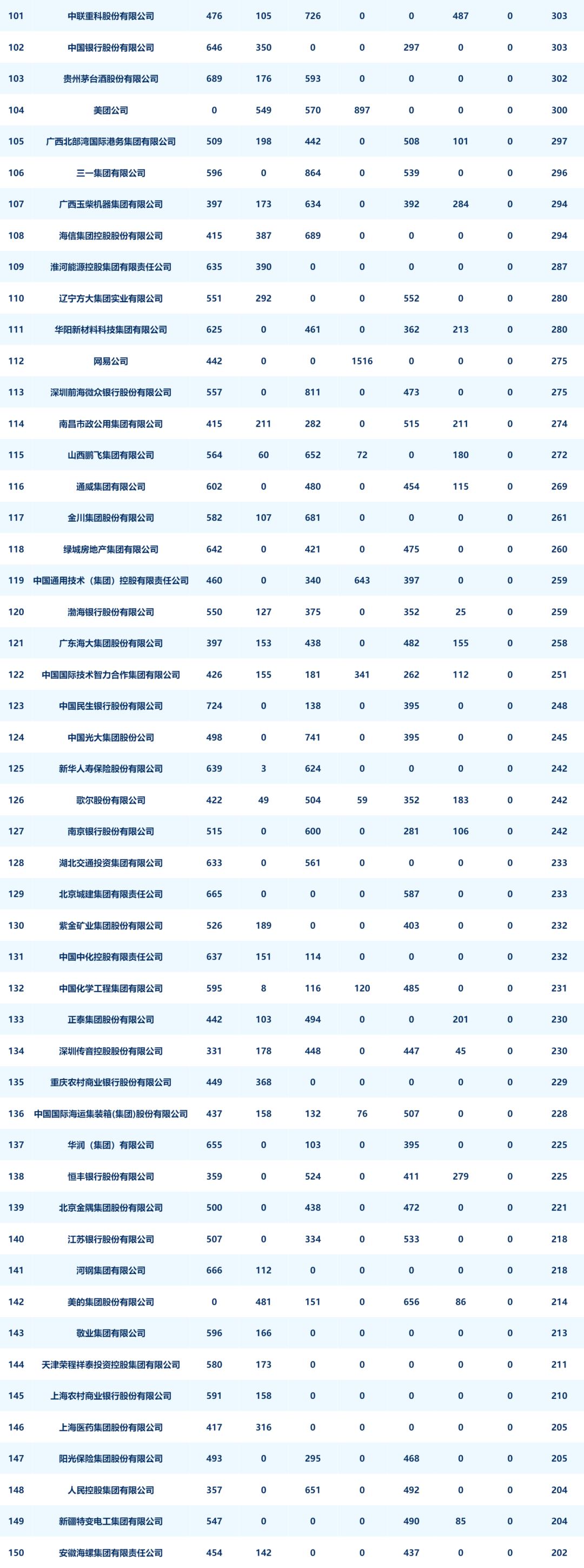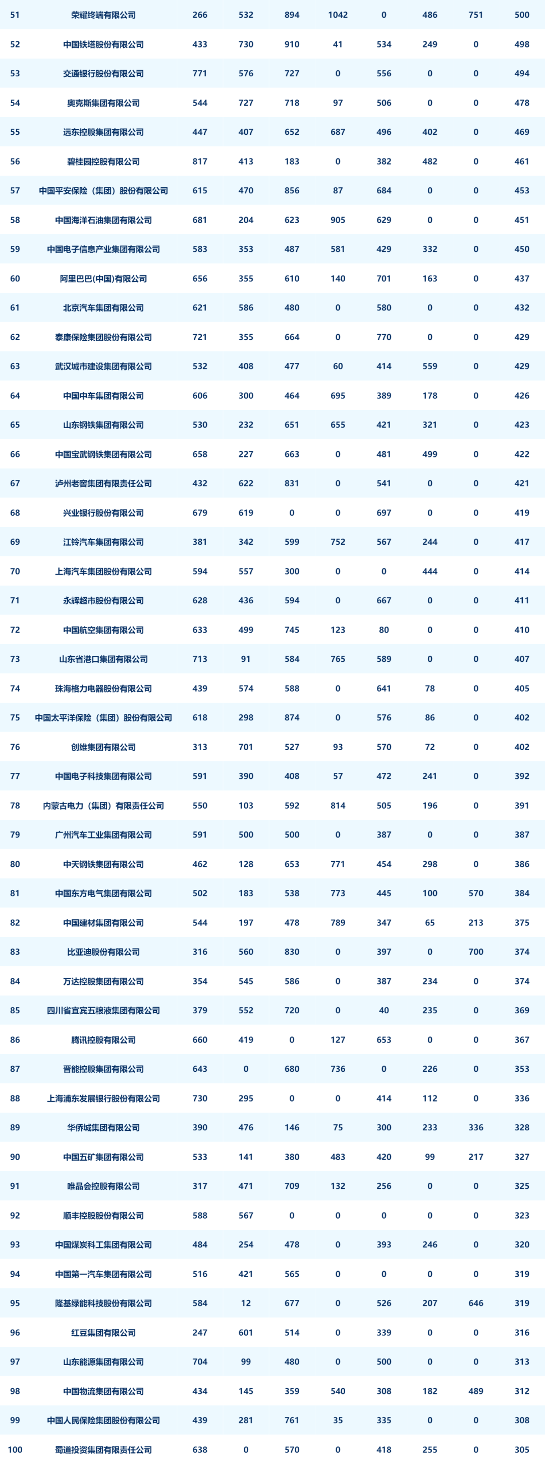 其他上榜的四家企业分别为:云南省建设投资控股集团有限公司190名,云南省能源投资集团有限公司267名,云天化集团有限责任公司304名,昆明市交通投资有限责任公司409名。该榜单以中国企业联合会发布的“2022年中国企业500强”、98家中央企业为标本进行研究,推出榜单。指数榜收集、分析了2023年8月1日-8月31日期间500强企业各新媒体平台账号、一级央企各新媒体平台账号已开通的官方微信公众号基础数据。