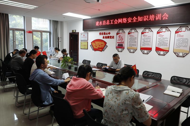 建水县总工会积极组织干部职工开展网络安全知识培训,学习网络安全领域重要法律法规及习近平总书记关于网络安全的部分相关重要论述。在县职工服务中心LED显示屏上宣传网络安全宣传周主题。通过微信公众号及QQ群发布《中华人民共和国个人信息保护法》及习近平总书记关于网络安全的部分相关重要论述。配合县委网信办开展网络安全宣传周宣传活动,发放网络安全宣传册300份。
