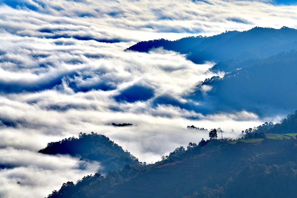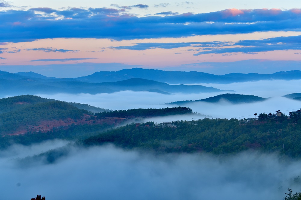 南华县山乡的早晨云雾缭绕