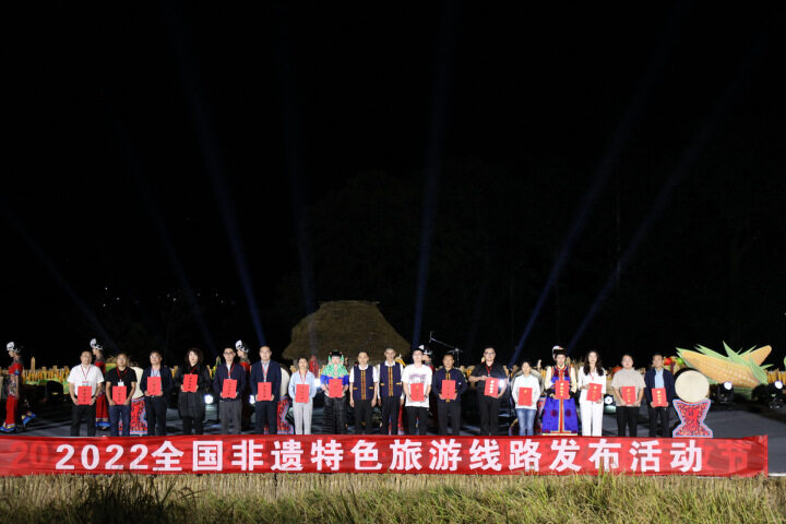 9月22日,由云南省文化和旅游厅、云南省红河哈尼族彝族自治州政府、中国旅游报社主办,红河州文化和旅游局承办的2022全国非遗特色旅游线路发布活动在红河州元阳县哈尼小镇举办。本次活动遴选出20条全国非遗特色旅游线路,并为其代表颁发证书。其中,大理苍洱毓秀非遗之美体验游名列其中,为云南省唯一入选的非遗特色旅游线路。