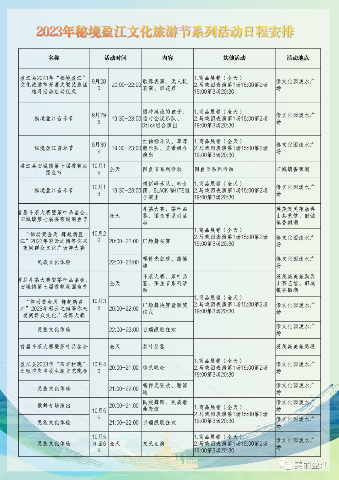 内容:邀请跳大海乐队、德宏州勐巴娜西组合、澜沧县演唱组合、UP耿马组合等参与演出。