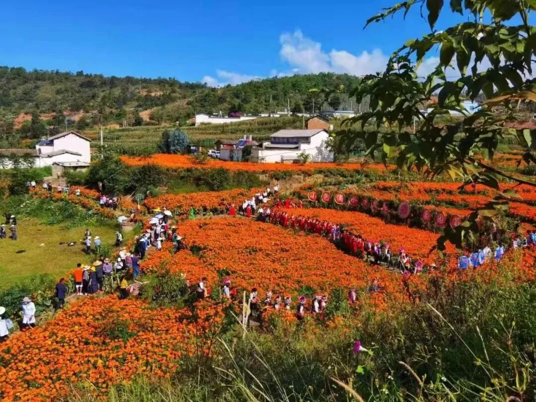 秋天的栗子园,千亩万寿菊以绰约风姿绽放于漫山遍野,尽显妖娆。以绿色产业、金色花海、秀色村庄、多彩农特博人眼球,栗子园村是弥渡县经济活、人气足、乡愁浓的新晋魅力乡村。