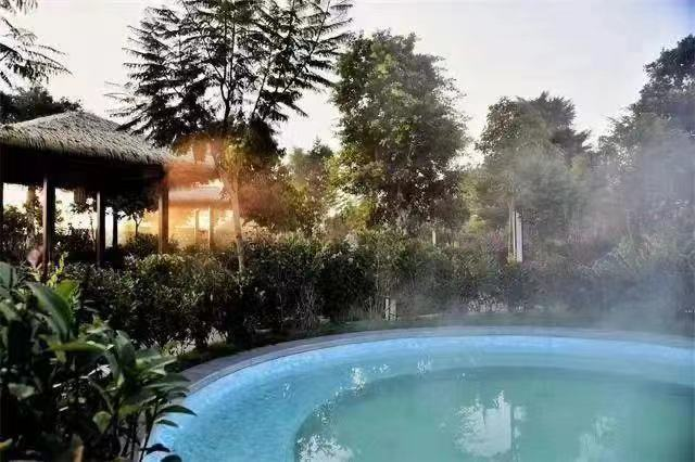 小河淌水乡村振兴示范园火龙庙温泉距离县城6公里,是国内少有的弱碱性碳酸自涌复合型温泉,初始水温76度,PH值7.54,属弱碱性碳酸泉。其设有牛奶池、玫瑰池等大小养生泡池20余个,掩映在绿树繁花中的露天泡池,听风看景闻鸟声,亲近自然,好不惬意。