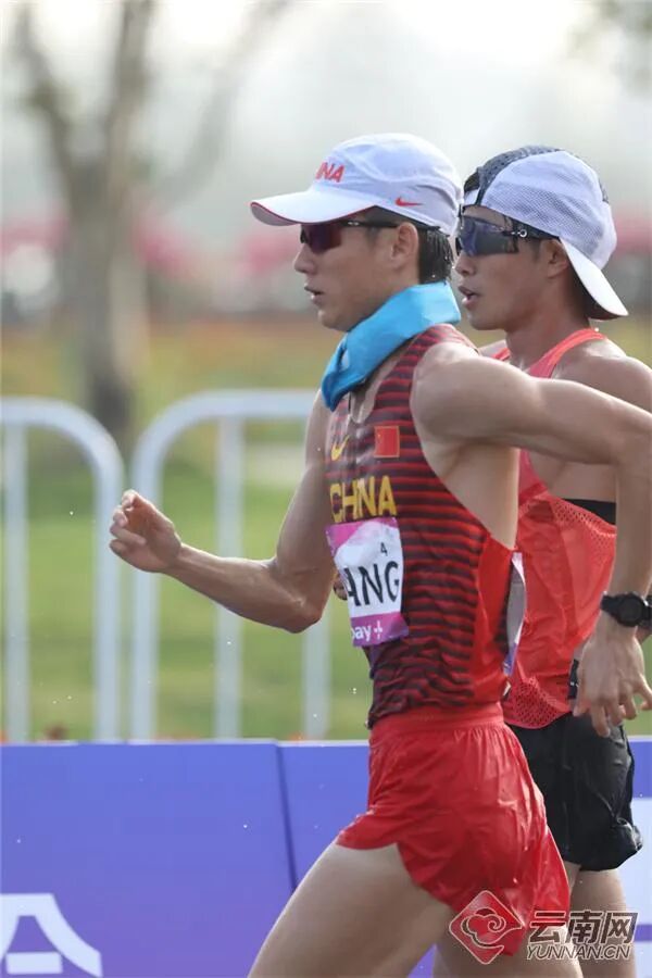 9月29日,杭州亚运会田径项目迎来首个赛事比拼,男子20公里竞走在智慧新天地沿江景观带鸣枪起走,云南竞走名将张俊代表中国队与队友王朝朝参与金牌争夺。