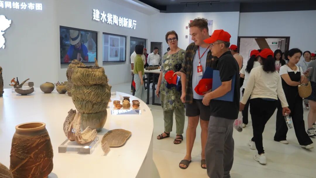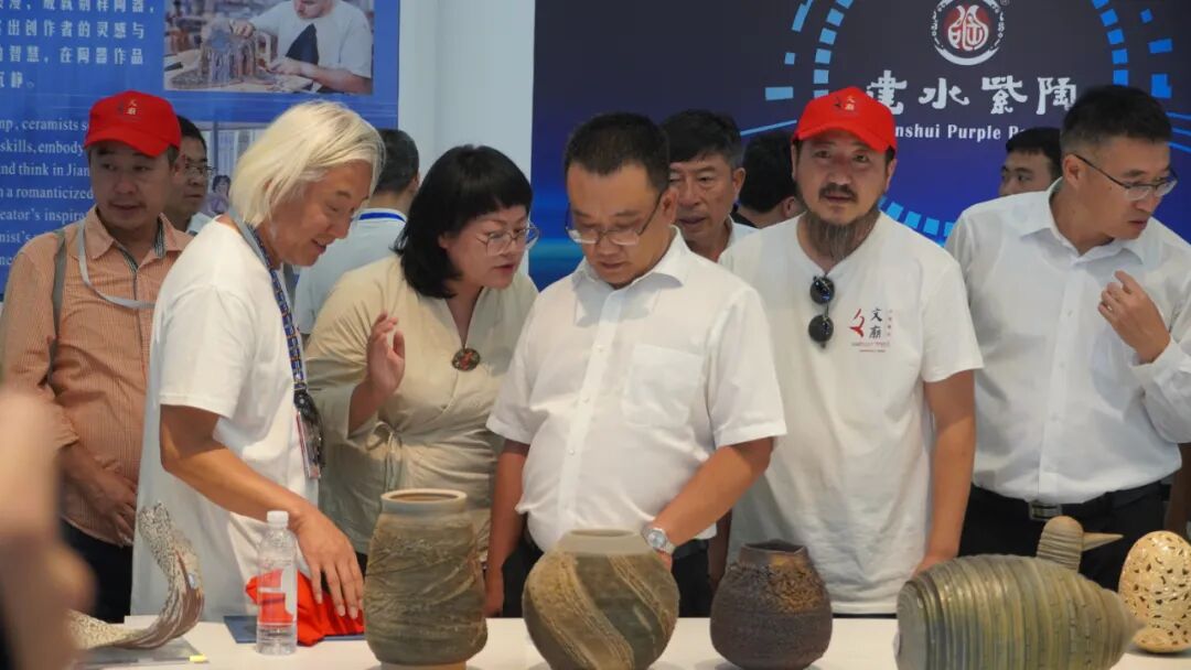 参会人员参观了2023第五届上海—云南建水国际陶瓷柴烧艺术节暨第四届建水紫陶文化节作品展,与陶艺家们面对面交流,探讨陶艺家的创作灵感,分享观展心得。
