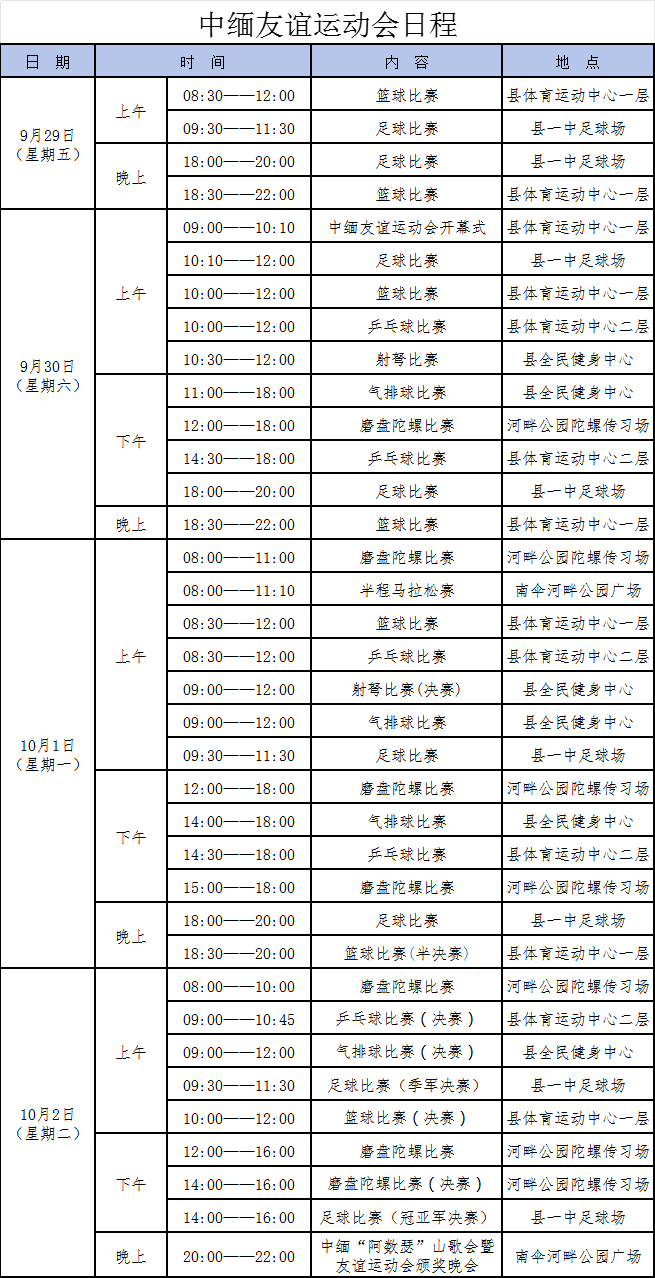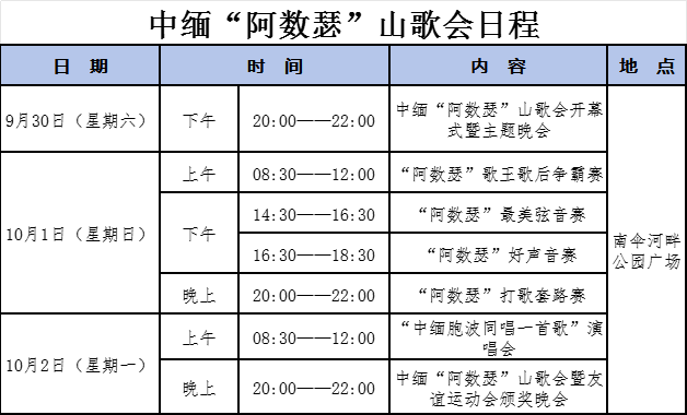 中缅“阿数瑟”山歌会暨友谊运动会日程表