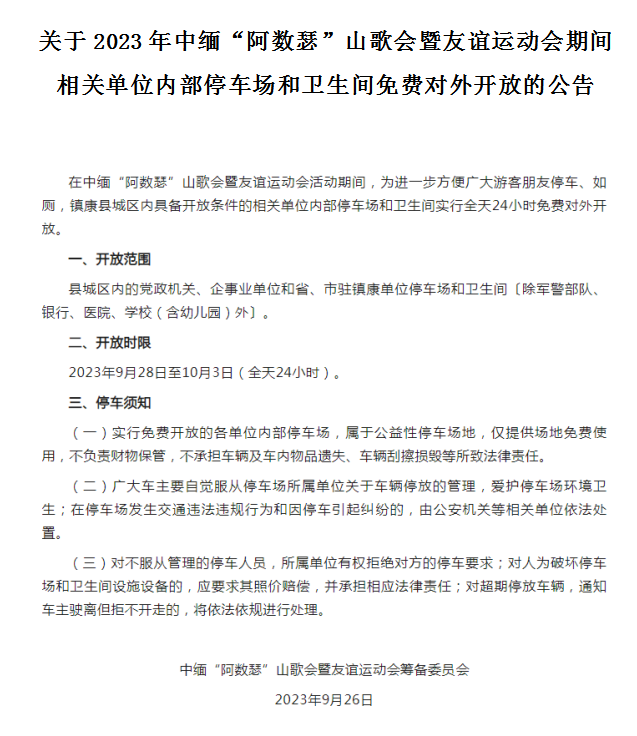 中国镇康·缅甸果敢“阿数瑟”山歌会暨友谊运动会9月30日至10月2日镇康县县城将举办中国镇康·缅甸果敢“阿数瑟”山歌会、友谊运动会,商贸美食展销和招商引资洽谈等活动。