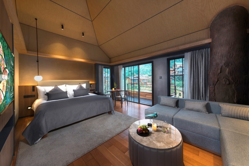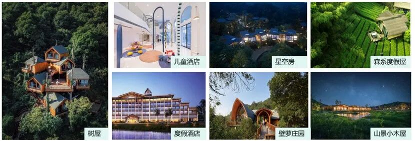 森泊集中式度假酒店拥有多种高星级房型,可赏戛洒江无限江景风光;儿童酒店与儿童乐园、餐厅相连,充满无限童趣;度假木屋沉浸于森林中,给人独一无二的亲自然居住体验,除森系小木屋外,还拥有树屋、星空房、婚礼房等多种特色度假别墅。