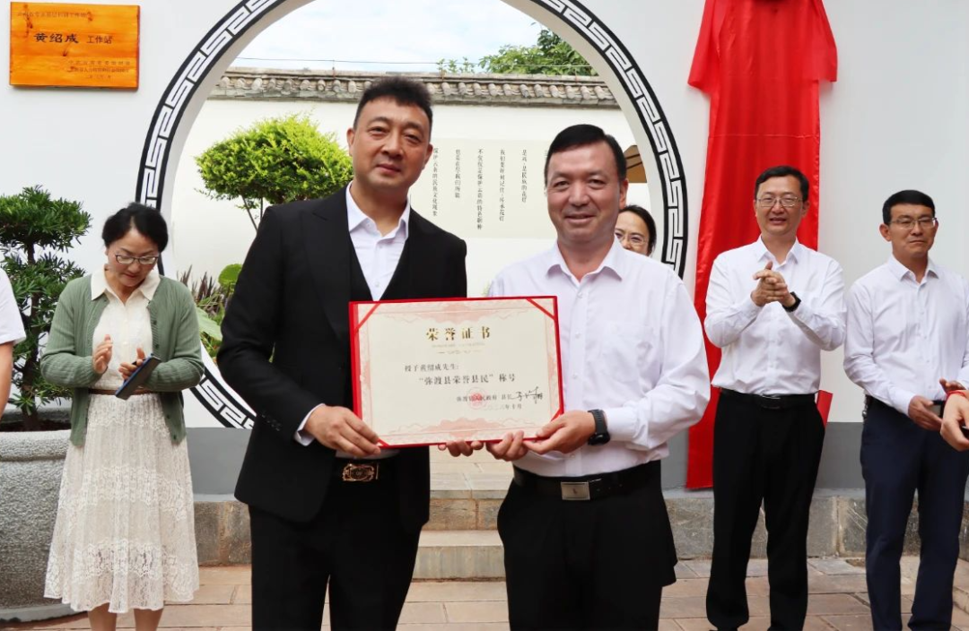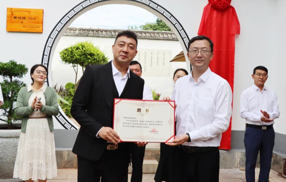 据了解,黄绍成是国家一级演员、中国戏剧家协会理事、云南省青年表演艺术家,云南戏剧“山花奖”“云南文学艺术新人奖”等奖项获得者。曾于2011年至2013年在弥渡县挂职担任副县长,致力于推进弥渡县非物质文化遗产保护传承与文艺精品创作工作。离开弥渡后,仍时刻牵挂着弥渡各项事业的发展,多次率团到弥渡开展文化结对帮扶、弥渡民歌音乐宣传MV拍摄、《小河淌水的地方》云南经典民歌音乐分享会等活动,为发展宣传推介弥渡文化做了大量卓有成效的工作。弥渡黄绍成文化小院成立后,将积极推进、探索和服务好弥渡县公共文化服务体系建设,助力弥渡地方特色文化传承、创新和发展扬帆远航,助推弥渡文化旅游产业发展迈上新台阶,为擦亮“小河淌水·幸福弥渡”的金字招牌作出新的积极贡献。