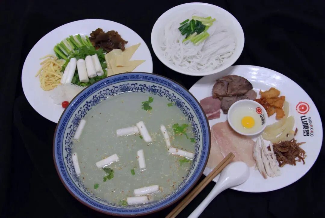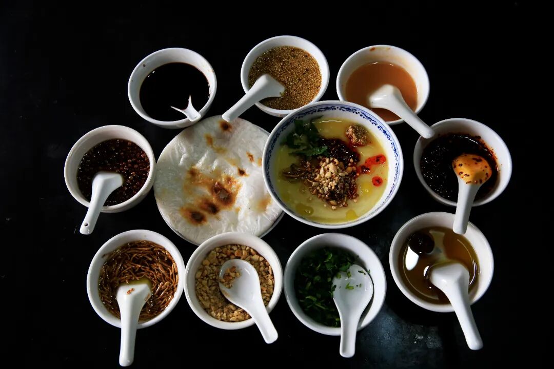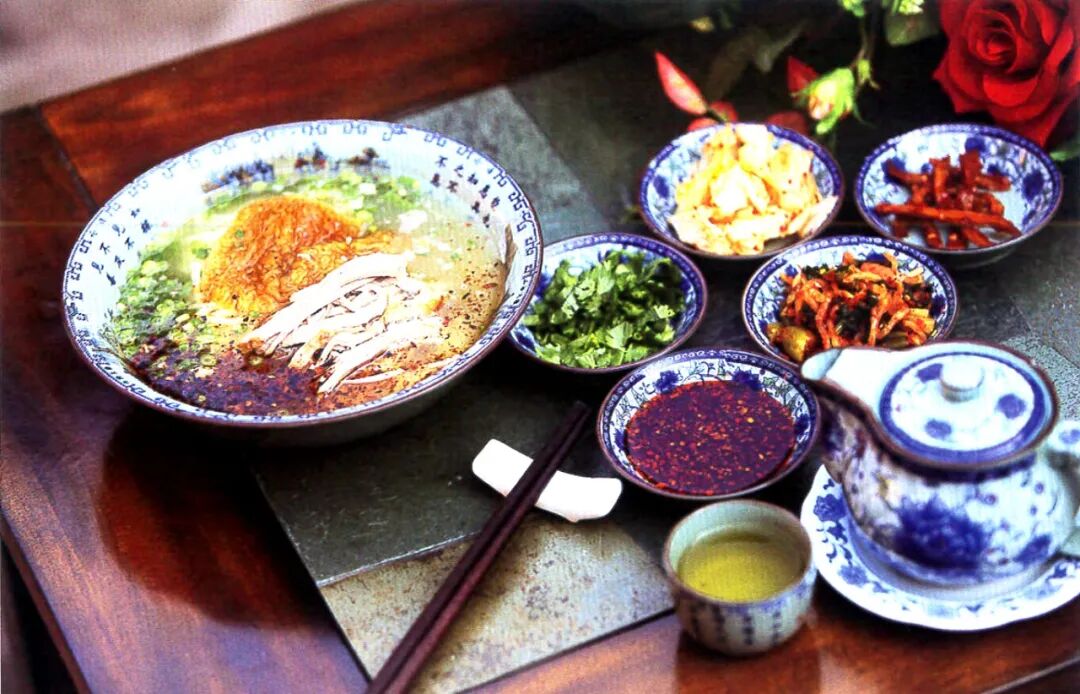 配以泡菜、腌菜、腌萝卜条等咸菜