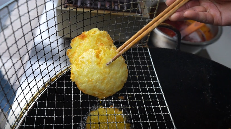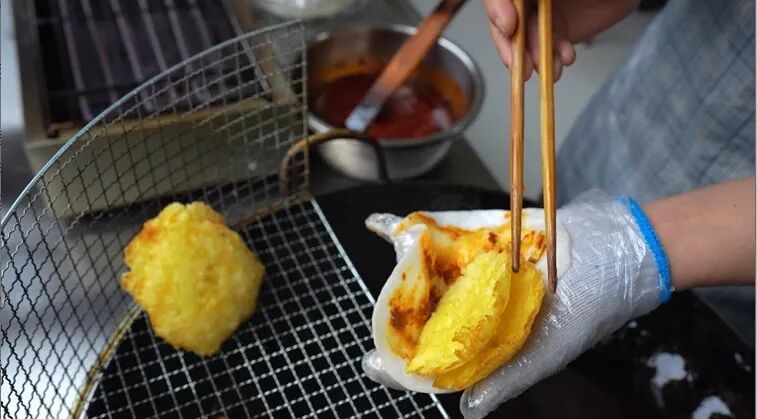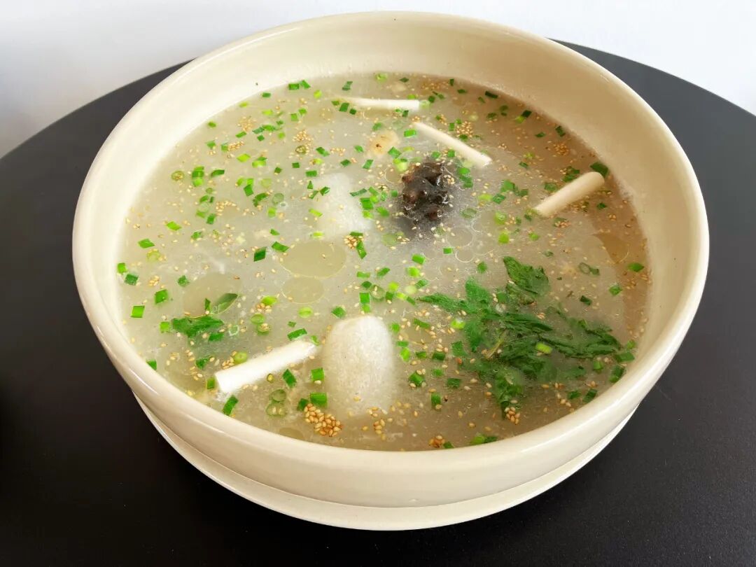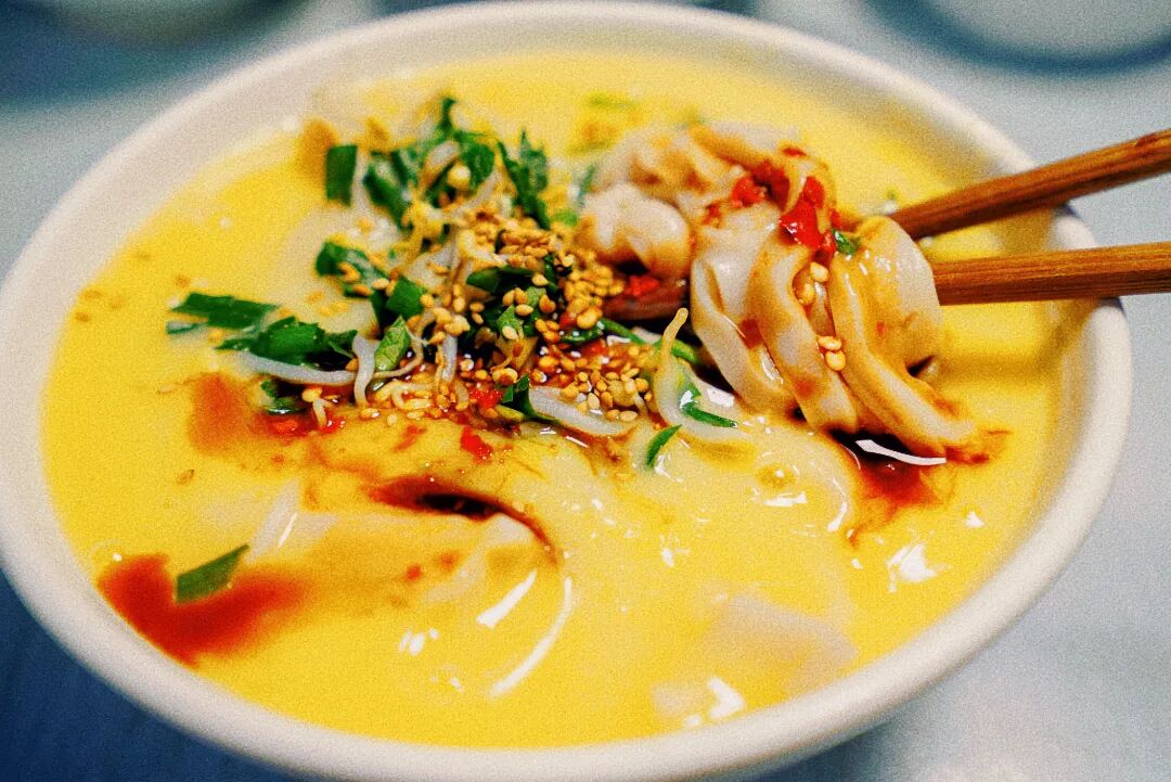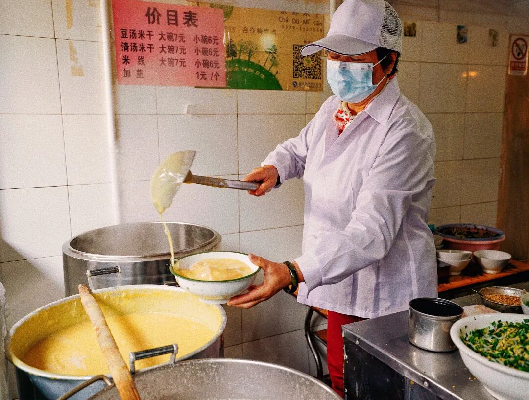 浇上两大勺由黄豌豆磨浆而成的鹅黄色豆汤