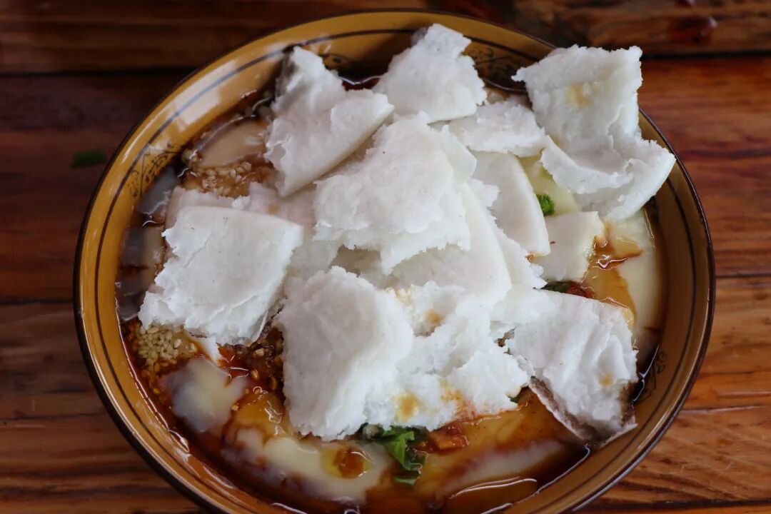 (稀豆粉与风吹粑粑、米线等美食的巧妙组合 保山市委宣传部 供图)