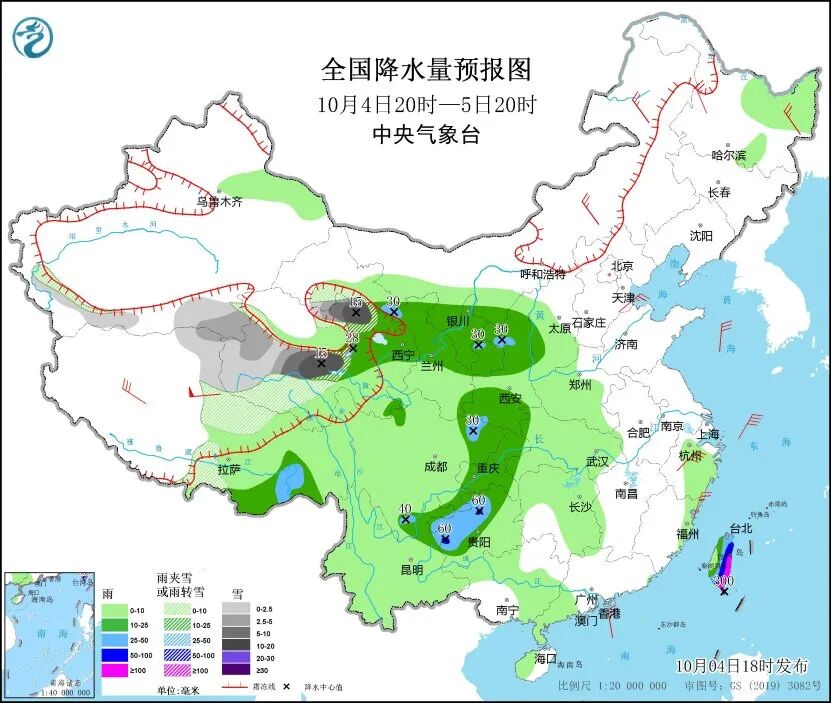 昨天夜间至今晚,青海中西部、西藏东部、甘肃西部等地有小到中雪或雨夹雪,青海中部局地有大到暴雪,西藏东南部、陕西、四川盆地东北部、贵州西部、台湾岛等地部分地区有大到暴雨,局地特大暴雨。
