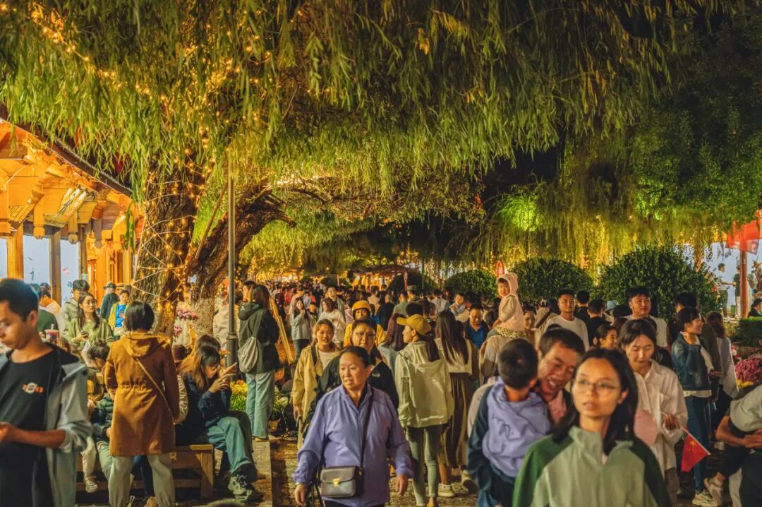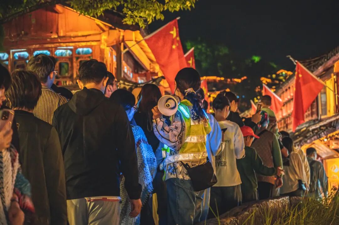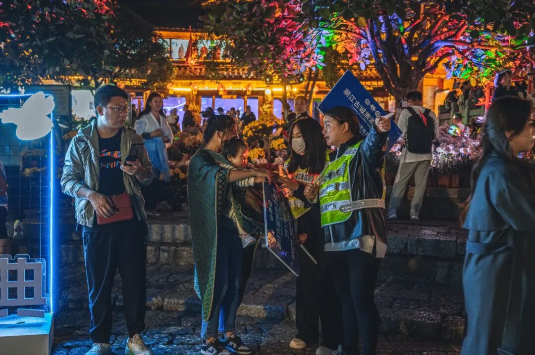 由于夜间进入古城景区游览的游客较为集中,丽江古城景区每天增派20余名工作人员,从19:00-23:30在客流集中区开展客流疏导和文明引导等工作,有效保障假日期间安全有序的游览环境。