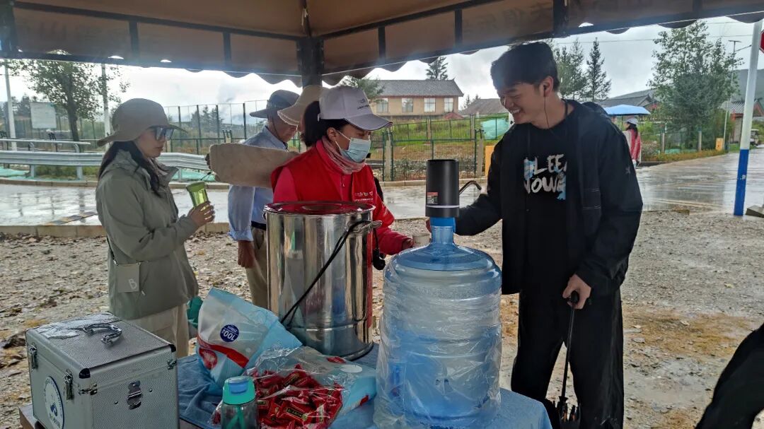 冰川博物馆门前,工作人员也提前备好了爱心便民箱和姜茶,为每一位有需要的客人提供服务,让他们能深切感受到玉龙雪山景区的人文关怀。